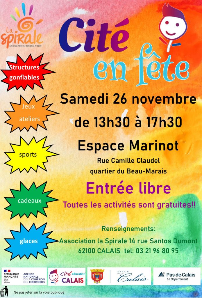L’association la spirale organise la 1ère fête de la cité éducative « cité en fête » avec le soutien financier de l’état, la mairie de Calais et le département du pas de Calais.